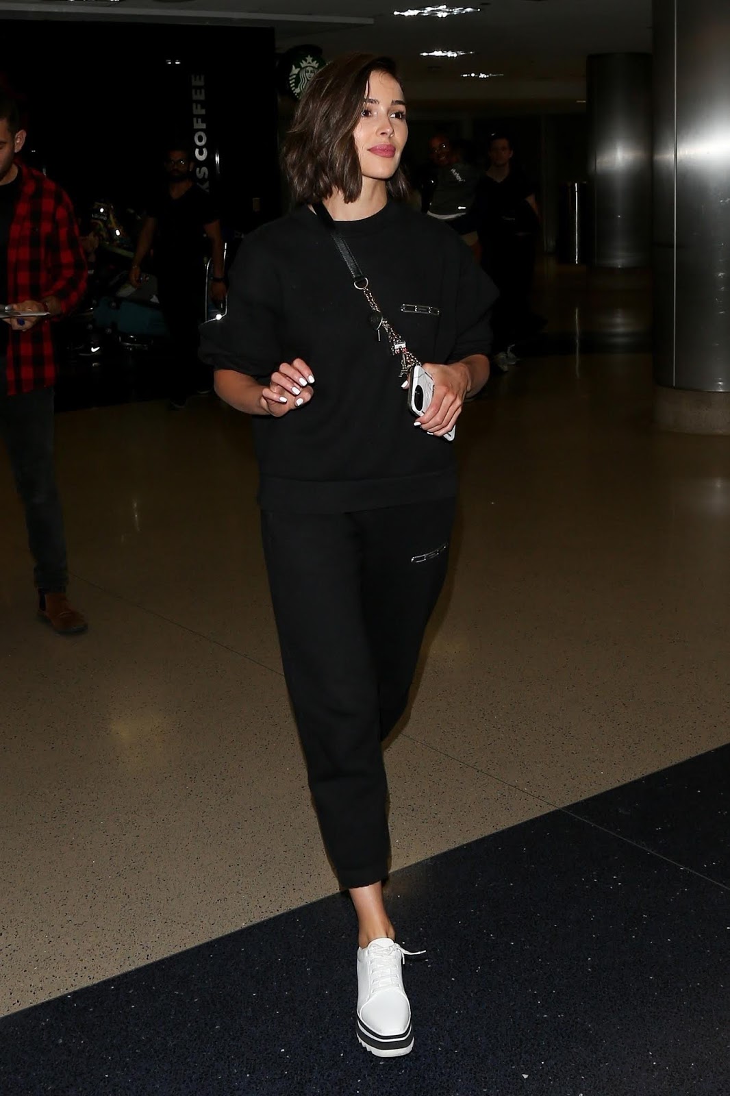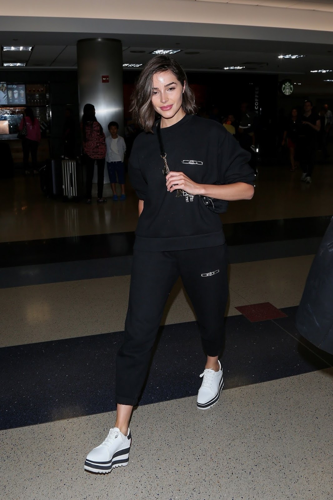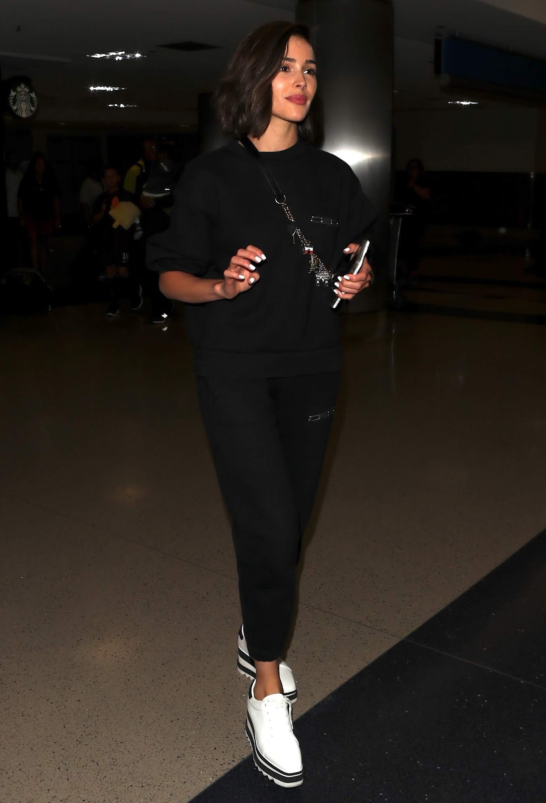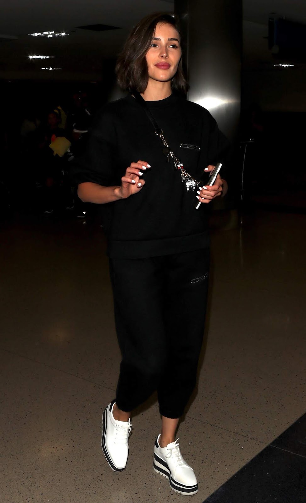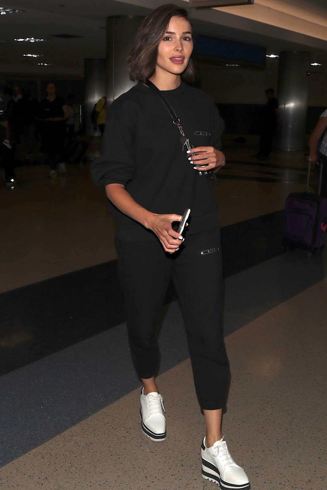Source Olivia Culpo spotted at LAX airport in Los Angeles, California … dresses down in sweatpants and behaving rather suspicious manner. Could it be she is smuggling in the latest iPhone 11 prototype from China exclusively for Donald Trump?