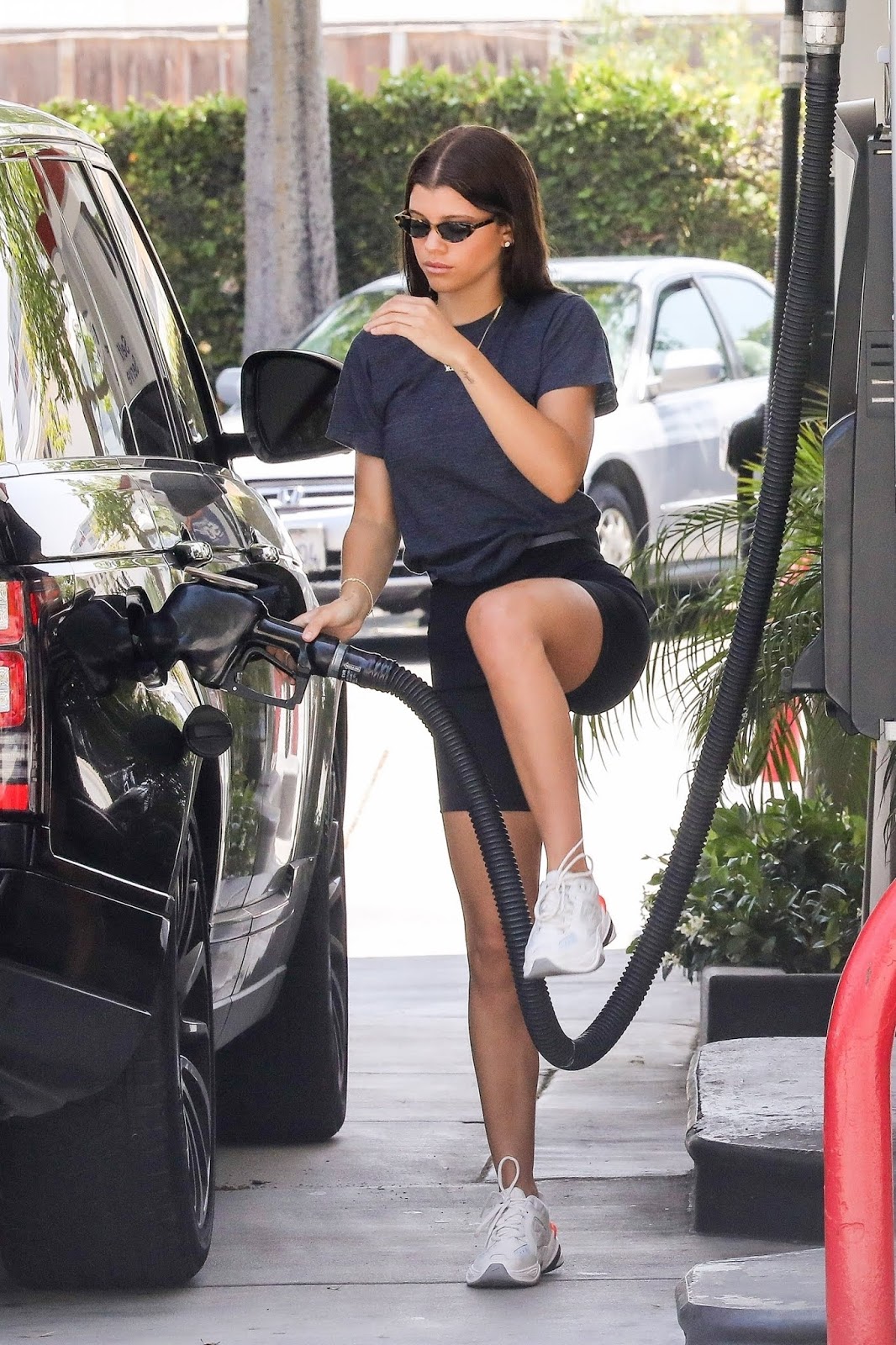 Sofia Richie skulking suspiciously at a gas station